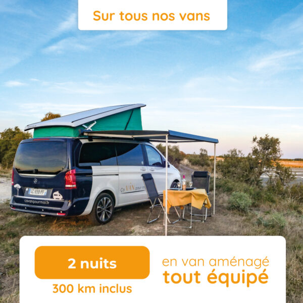 Pendant leur séjour en Van avec Ça VAN pour moi, les bénéficiaires du bon cadeau bénéficient d’une assurance tous risques. Celle-ci comprend la responsabilité civile des conducteurs (jusqu’à 2) et couvre les dommages en cas d’accident. Ils bénéficient également d’une assistance 24/24.